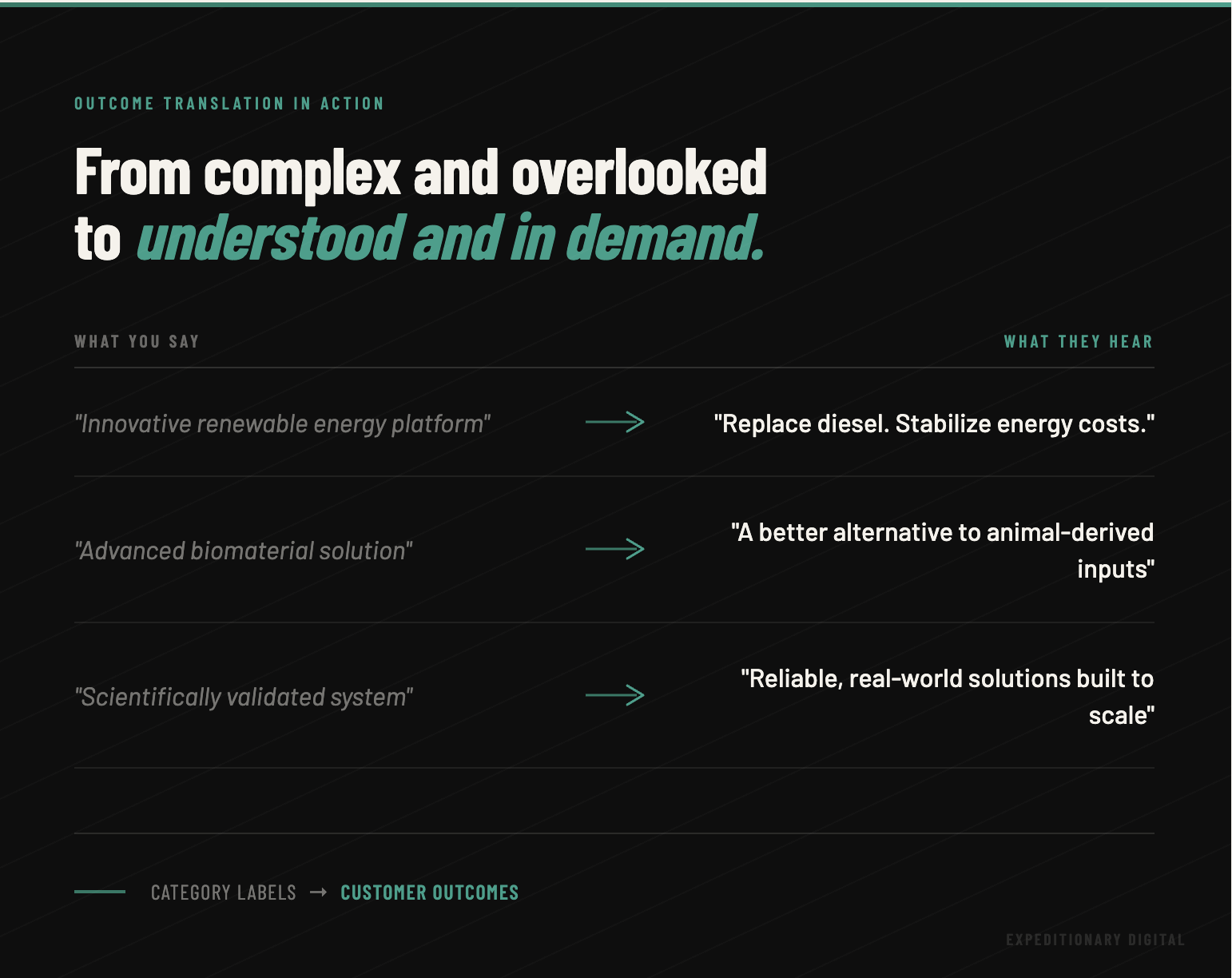 Outcome Translation: Your work becomes stories about problems, solutions, and transformation, so prospects see exactly how their world improves when they choose you.